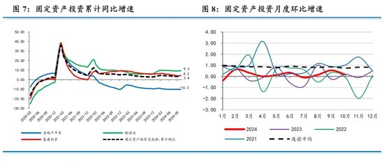 1-10月固定资产投资同比增长3.4%,与1-9月持平,维持年内最低水平。我们测算的当月同比增速为3.4%,与上月持平。不过,10月季调环比0.16%,低于上月的0.54%,也慢于疫前同期平均的0.75%,弱于季节性。