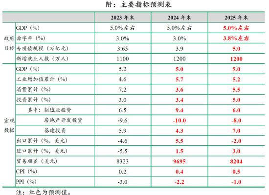 从必要性看,维持5.0%的增长既可为长期规划预留缓冲空间,又可为短期吸纳就业提供经济支撑。长期角度,如果要实现“到2035年实现经济总量或人均收入翻一番”的目标,2021年-2035年平均经济增速必须要达到4.73%左右,但2023年、2024年名义GDP增速均低于这一水平。考虑到未来经济潜在产出水平或将回落,如果要确保实现既定目标,必须要尽可能维持相对高的增长水平,预留出足够大的空间。