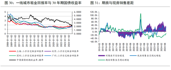 房价企稳的指标可以用租金回报率与30年期国债收益率的差值来衡量。自2021年以来,30年期国债收益率保持单边下行态势,而同期一线城市的租金回报率则缓慢抬升,目前两者之间的差距已经缩窄至2009年以来的最低水平,这意味着房子作为投资品的价值在逐渐凸显,进而将激发一部分投资需求入市,再加上地方政府利用专项债和再贷款加大收储,这些都将有利于房价企稳,但低线城市企稳时间或将延后。