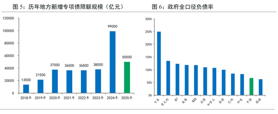 二是新增专项债额度增加至5万亿元。一方面,地方政府需扩大专项债券发行规模补充综合财力,用于置换隐性债务、回收闲置存量土地、收购存量商品房用作保障性住房等。另一方面,“十四五”收官和加快构建现代化基础设施体系要求下,2025年一大批重大工程和重点项目将会陆续开工建设,基建项目新增资金需求仍然较高。