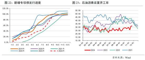9月以来出台的一揽子增量政策中,大规模化债是核心举措之一。四季度追加发行4000亿元地方债结存限额和增加发行2万亿地方政府专项债,将有助于减轻地方化债压力,可腾出更多资源发展经济,加上此前已发未用的2.3万亿专项债加快转化为实物工作量,以及发改委提前下达了1000亿元“两重”项目清单和1000亿元中央预算内投资计划,四季度基建投资增速有望筑底回升。