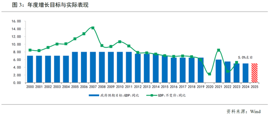 过去两年,我国经济增长目标均设置为5.0%左右。2023年实际增长5.2%,2024年有望达到5.0%,均顺利实现目标。2025年增速目标仍可能设置为5.0%左右。