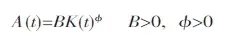 和θ分别表示资本、劳动以及知识存量对技术增长的影响系数。
