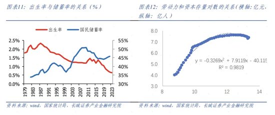截至目前我们回答了未来长期经济增长下降的主要原因是人口增速的下降,同时储蓄率的提升会降低资本回报率,下面我们需要回答:储蓄率的上升是否会降低未来人口增速?我们在前期系列报告《中国生育率研究》和《中国人口趋势研判及建议》中已经发现,出生率与一国的宏观杠杆率有关,宏观杠杆率上升越快,出生率下降越快。同时边际消费倾向与货币流通速度走势一致,其中储蓄率等同于边际消费倾向,货币流通速度等同于宏观杠杆率(贷款余额/GDP或M2/GDP)。所以提高储蓄率等同于提高了宏观杠杆率,降低了出生率,进而降低了人口增速和劳动力增速。