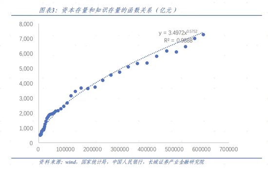 上图显示出知识存量和资本存量之间存在幂函数关系,并且根据此可得出中国的干中学模型展示如下: