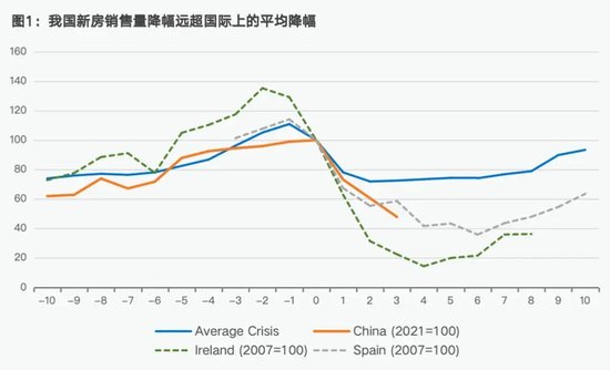其次,对比国际经验来看,我国本轮房地产调整的深度已经足够深,时间也已足够长。上述测算还显示,我国新房销售量较2021年的峰值水平下跌了51.9%,新房销售量已经回调至2007年的水平,从国际上横向比较来看,已经超过国际上房地产危机后新房销售量35.1%的平均降幅。