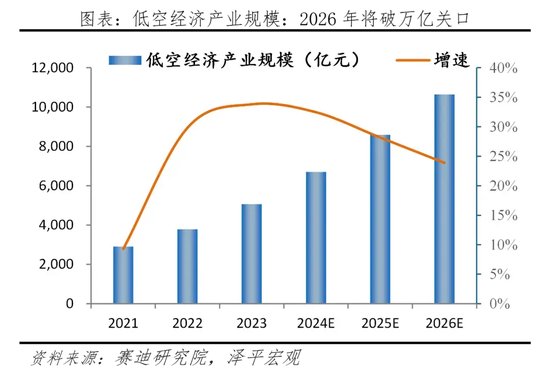先进技术密集,涉及高端制造、新能源、无人驾驶飞行、低空智联网等技术要素。据赛迪研究院数据,2023年,我国低空经济市场规模5060亿元,同比增长33.8%,预计到2026年将突破1万亿关口。
