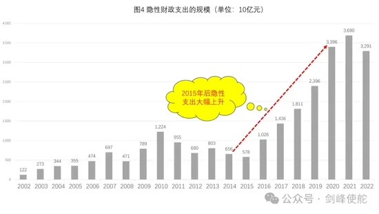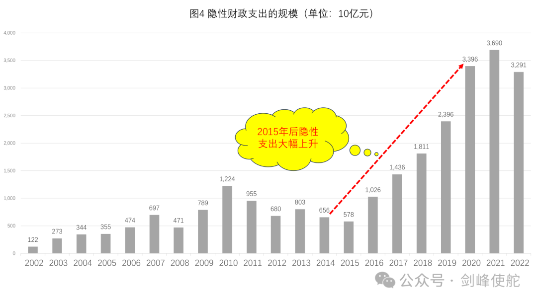 全口径的财政支出=公开的四本账支出+隐性财政支出