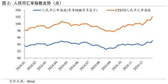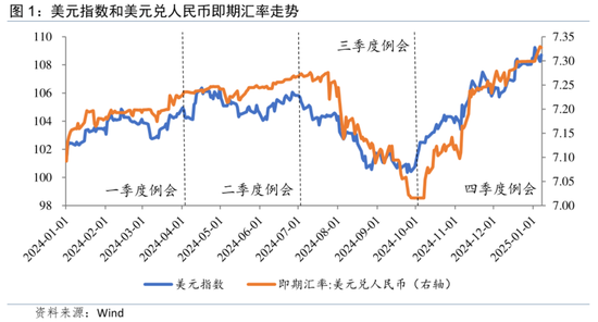 2024年12月,随着美联储实施“鹰派加息”及特朗普政府交接临近,做多美元情绪继续高涨。在此背景下,人民币对美元的汇率压力较大。2025年1月下旬,特朗普就职和美联储议息会议即将落地,可能扰动当前美元交易逻辑,进而对人民币汇率产生影响,届时或是“择机”的较重要时点。若美元继续走强,则可能限制降准降息的空间。