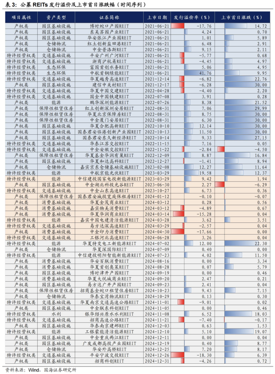 从发行溢价率看,受行业基本面、资产质量、二级市场走势、投资者情绪等多重因素综合影响,实际发行定价往往会与底层资产估值存在一定差异,呈现为折价与溢价发行,最终会在二级市场的交易过程中进一步调整。