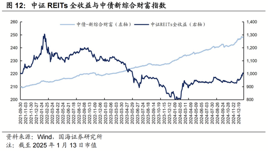 从收益水平看,当前公募REITs相较债市更具性价比,特许经营权REITs派息率显著高于产权类,2024年以来公募REITs进入修复行情。2025年1月13日,样本公募REITs中收益率均高于3.49%,与3Y-AA+企业债收益率相比存在至少155bp利差空间。特许经营权REITs因派息中隐含本金回收部分,派息率显著高于产权类,样本均值达10.39%。2023年公募REITs经历了两次超跌,在2024年修复行情中保障房、生态环保、能源板块恢复更快。