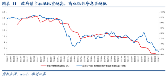 2025年,我们认为居民存款搬家仍将持续。背后原因在于,社融站在实体部门的视角是实体部门的负债,站在金融机构的视角就是金融机构的资产。化债叙事下,后续新增政府债占新增社融比重预计会持续抬升,这意味着金融机构新增资产的回报率或将边际降低。金融机构新增资产回报越低,净息差下行概率就越大,那么商业银行降低存款利率的必要性就越高。存款利率越低,居民越有可能存款搬家至非银机构。