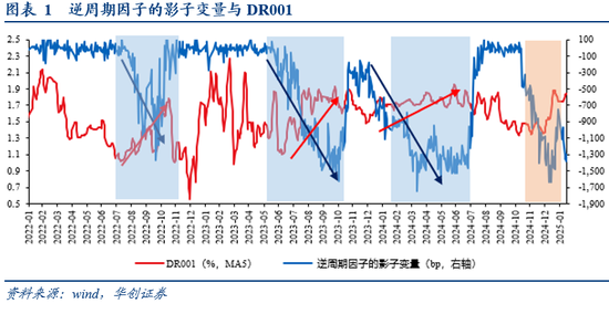 对比来看,四季度的货币政策执行报告对汇率的态度相对更为坚决。特别值得注意的是,在有关海外货币政策讨论的情境下,2024年的三季度,央行的表述是“主要发达经济体通胀总体回落,货币政策进入降息周期”;而2024年的四季度,央行的表述是:“主要发达经济体通胀压力总体回落,但进入降息周期以来通胀有所反弹,对平衡经济增长和通胀提出更多挑战。”在此背景下,我们持续强调,2022年以来,每当我们测算的逆周期因子的影子变量显著抬升期间,银行间利率均会呈现趋势抬升的走势。稳定市场预期和加强市场管理的背景下,短期汇率的波动或是货币政策择机考量的因素之一。