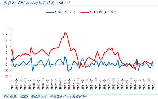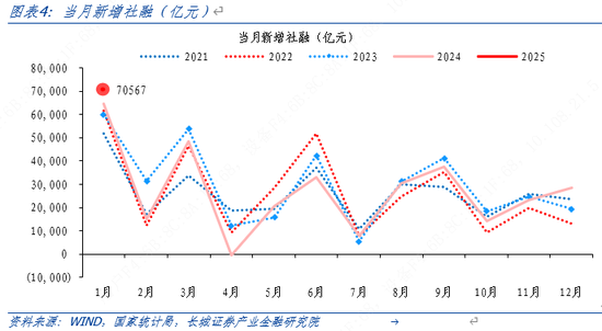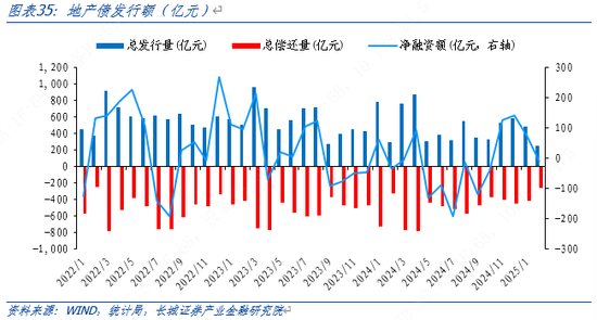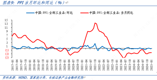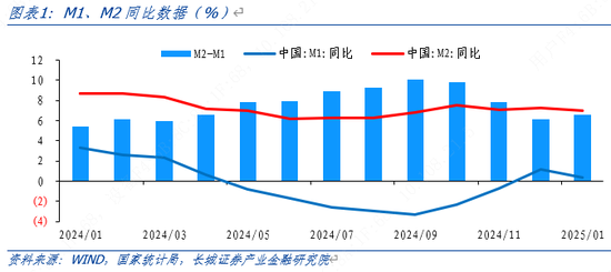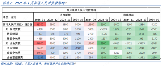 2025年1月的社融数据中,信贷融资52194亿元,较去年同期有显著增长(比2024年1月增加5833亿元);1月新增贷款数据中,企业贷款迎来开门红,当月新增47800亿元,比去年同期增长9200亿元;其中企业信贷多以中长期贷款为主,当月新增34600亿元,同比增加150亿元;短端当月新增17400亿元,同比增加2800亿元。然而,从企业贷款增速来看,开门红带动下,1月数据虽同比稍有增长(企(事)业单位贷款增速为9.55%),但仍处于近年历史低位水平。