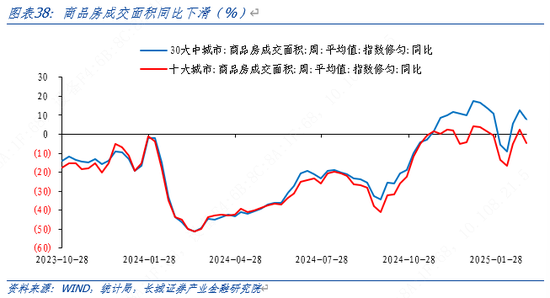 4季度房地产行情在2025年1月初开始降温,10大城市和10大城市商品房成交面积均有断崖式下滑,30大中城市商品房成交面积较去年同期体量相当,处于往年同期的历史低位。同比来看,30大中城市商品房成交面积同比与春节前大体持平,10大城市转负下滑。去年四季度的房地产增量政策影响在逐渐弱化。
