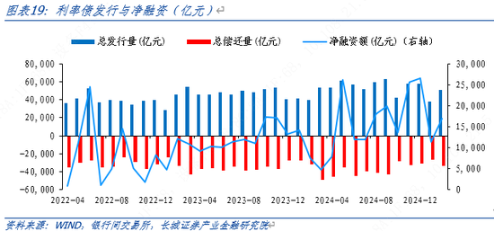 2月份,包括国债、地方政府债、金融债、同业存单在内的利率债总发行量为50883.70亿元,总偿还量为33859.09亿元,净融资额为17024.61亿元。相较于1月,净融资额有所回升,同环比分别为1.29%/0.50%。