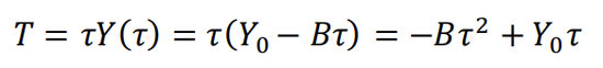 为了形象描述拉弗曲线的形状,假设纳税总额与税率之间是纳税收入函数为线性函数