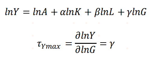 理论界主要有两个模型研究经济增速最大化的情况:Barro模型和Scully模型,其中Barro模型是在AK生产函数的基础上引入政府公共支出,该模型公式如下: