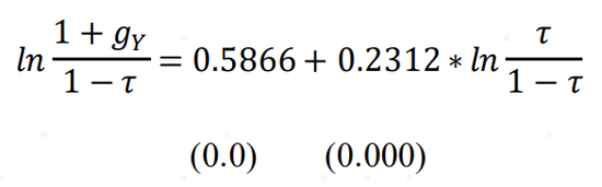 Scully模型认为平均税率与经济增长速度之间存在相关关系,该模型公式如下: