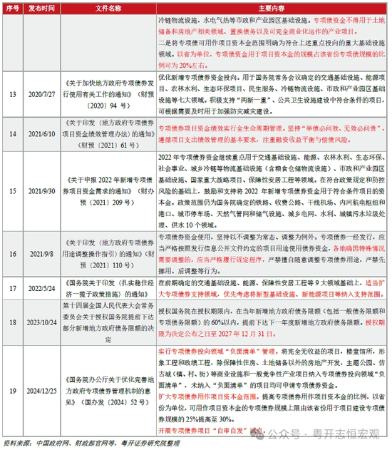 四是优化与完善阶段(2024年底以来):进一步优化完善专项债管理机制,更好地发挥专项债的积极作用。其一,实行专项债券投向领域“负面清单”管理,未纳入“负面清单”的项目均可申请专项债券资金,重启土地储备专项债。其二,提高专项债券用作项目资本金的比例至30%。其三,开展专项债券项目“自审自发”试点,缩短项目申报与审核周期。
