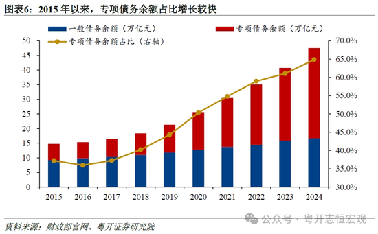 四是专项债务在地方债务余额中的占比逐年攀升,截至2024年底为64.9%。