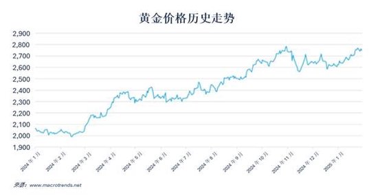 据Gold Price数据显示,截至2月初,黄金价格约为2,873美元/盎司,突破了去年10月创下的略低于2,788美元/盎司的历史高点。多重因素叠加,为黄金营造了极为有利的市场环境。包括乌克兰危机和中东冲突在内的全球不稳定局势,以及新兴经济体为代表的各国央行增购黄金行为,都令黄金在投资者心中熠熠生辉。