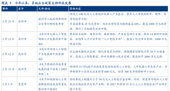此外,今年以来,已有深圳、杭州等多城发文支持“硬科技”产业发展。例如深圳,将设立100亿元人工智能和机器人产业基金,聚焦人工智能的软件、硬件、具身智能等方向。