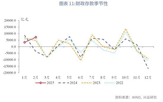 2025年2月M1回落,M2较上月持平。从M1来看,2025年2月M1整体弱于季节性增长。值得注意的是,2月居民较上月持平、企业存款增速小幅改善,2月M1增速回落可能反映了实体部门定存比例有所上行。从M2来看,新增人民币存款中,分部门来看,企业存款增速的改善或得益于化债政策的推进。市场流动性偏紧仍然是非银存款增速下行的主要原因。