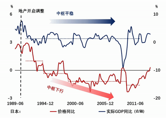 回望日本经济史,1990年房地产市场的剧烈调整之后,正如图5所示,蓝线代表的实际GDP表现稳定,与红线代表的GDP平减指数的持续下行形成鲜明对比。这种经济指标的“剪刀差”将决策者推向两难境地:当实际GDP达标与价格持续低迷同时存在,政策该何去何从?