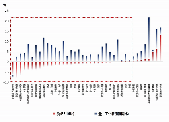 要回答这些问题,需要从微观感知视角切入。在现实经济运行中,量与价并非天然吻合。正如图2所示,高频经济指标清晰反映出,很多工业和制造业部门的企业都有“以价换量”的共同特征,即通过价格调整策略换取市场份额。这种行为虽能维系企业生存,但持续的价格下行可能会削弱市场信心。因此,我们期待看到一种量价协同发展的良性循环,这也会为市场注入更强劲的信心和动能。