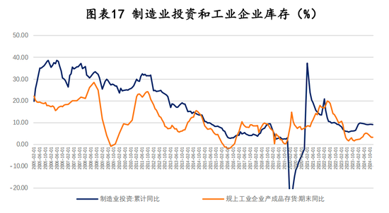 固定资产投资中的最大项目是制造业投资,预计2025年制造业投资增速大概率不超过2024年。一是只有库存周期见底向上之后,制造业投资增速才会提高,目前产成品库存还很难说见底回升;二是以新能源为代表的新产业加速发展是拉动制造业投资的主要因素,汽车、电气机械和计算机通信三大行业对制造业投资贡献率达到50%,目前相关行业投资有回落迹象。在此,假定2025年制造业投资增速较2024年略有下降,为9%。