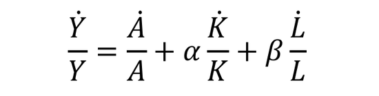 根据新古典主义经济理论,将总量生产函数进行拆解,得到: