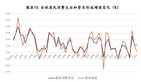 这一点,可从1971年以来全球居民消费和资本支出的关系得到验证。进一步对这组数据进行统计分析,可发现二者具有长期协整性,在此基础上进行Granger因果检验,资本形成能够更好解释居民消费增长。换言之,在一个长时间维度上,资本形成对消费增长的带动作用相对较强,而居民消费增长对资本开支增长的解释力相对较弱。这也说明,如果要打破消费低迷和价格下降的负向螺旋,需要有一个外部投资来撬动,这就需要政府发挥积极作用。