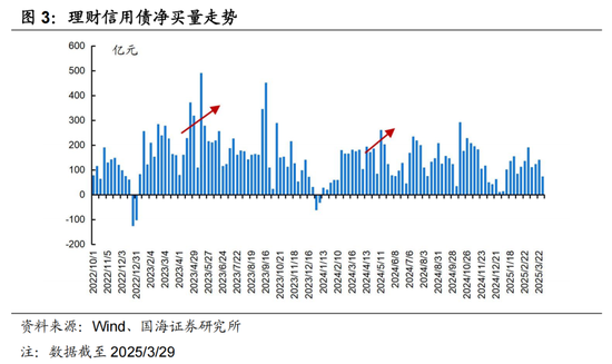 从需求来看,机构配债诉求季节性增加。从历史来看,理财规模呈季节性增加,理财二季度配债诉求将环比上升,尤其是信用债中短端或将受益明显。我们在《二季度,关注信用债机会》中也提到,基金二季度的配债诉求也将呈现季节性增加,这也将进一步催化二季度信用债行情。