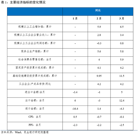 从价格来看,受春节错月、大宗商品价格分化(原油价格下行、有色价格上行)等因素影响,3月PPI同比下降2.5%,较上月扩大0.3个百分点;3月CPI同比下降0.1%,较上月收窄0.6个百分点。