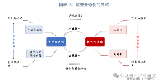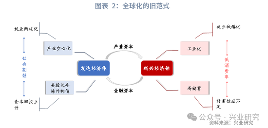 旧的全球化范式可以分为两条脉络:一是产业资本(如发达经济体的跨国公司)在全球范围内寻找更优的生产基地,从而流向新兴经济体;二是金融资本(如新兴经济体的高储蓄)寻找安全资产与更成熟的金融市场,从而流向发达经济体。