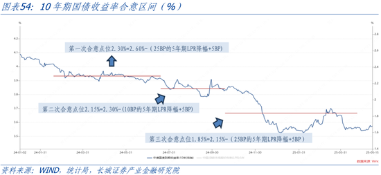 2024年初以来,在债市新阶段,十年期国债利率传统的锚可能失效,但在央行管控下(去年我们就经常提到,在当前长债收益率是央行多重管控目标之一的背景下,长端利率下降节奏就很大程度受制于央行),利率合意点位的中枢下降幅度跟政策利率下降幅度有较大关系,即所谓的利率可能没有锚,但利率下降中枢有锚。