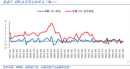 4月多数经济指标已经公布,就先行指标制造业PMI数据来看,二季度经济已经受到关税影响,生产和需求端动能齐齐减弱,回落至收缩区间。金融数据方面,4月新增社融1.16万亿元,比去年同期多增1.2万亿元,继续以政府债券为主要发力点,1.2万亿元的多增中贡献了近1万亿元。新增人民币贷款后继乏力,4月新增2800亿元,比去年同期减少4500亿元,也比上月大幅减少;居民端贷款徘徊负区间,企业端短贷也难以维继。通胀数据方面,4月CPI同比稳于-0.1%,继续负区间,但环比有所好转,由前月-0.4%升至0.1%;PPI也继续在负区间探底,同比低至-2.7%(3月-2.5%),环比稳于-0.4%。4月出口同比增速8.1%,虽较前月有所回落(3月为12.4%),仍在高位区间。当前中美关税虽然阶段性缓和,但90天的暂停期后如何演绎目前尚不知,抢出口的驱动效应仍然存在,真正的压力还要看后续的博弈情况。