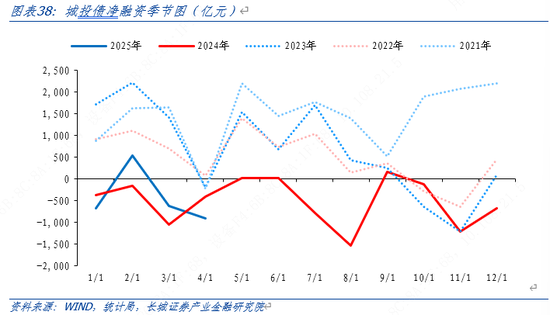 4月份,城投债总发行量为3530亿元,环比略微减少,与去年同期相当,总偿还量为4430亿元,发行与偿还继续放量,净融资额为-900亿元,在历年低位继续探底。