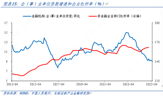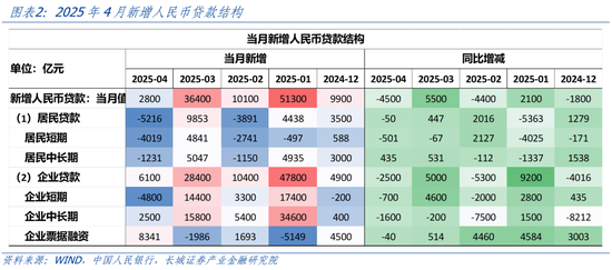 2025年4月的社融数据中,信贷融资884亿元,较去年同期回落2465亿元,信贷融资在今年1、3月规模爆发,呈现过山车走势,4月动能再次减弱、走向底部。4月新增贷款数据中,企业贷款当月新增较前月大幅缩水,短期贷款当月负增4800亿元。企业贷款增速来看,4月同比9.10%,底部区间持续刷新。