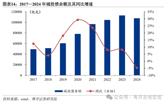 第三,城投公司内部造血能力不足,加之外部融资监管政策趋严,市场化转型难度仍然较大。其一,城投公司自身经营能力有限,现金流状况不佳。城投公司往往承担了大量公益性项目建设,项目建设周期长、投资回报慢,从项目回收的资金有限,不足以偿还债务本息。其二,城投公司市场化融资受限,尤其是涉及隐性债务的城投公司,市场化转型更加困难。其中城投债融资监管趋严,当前城投债净融资总体呈现下降态势,2024年末,城投债余额10.78万亿元,较上年末下降4.7%。重点区域公开市场融资更加受限,2024年重点省份中仅广西和吉林成功发行城投债。在内部经营和外部政策双重压力下,城投企业市场化转型之路任重道远。近期重点地区融资平台集中退出,更多是政策考核下“形式上”调整,而非依靠经营能力改善的“实质性”转型。
