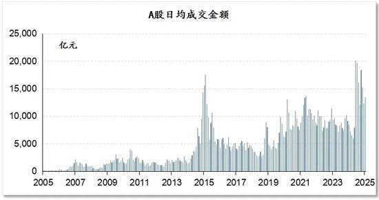 图表1 A股日均成交金额(2005-2025)