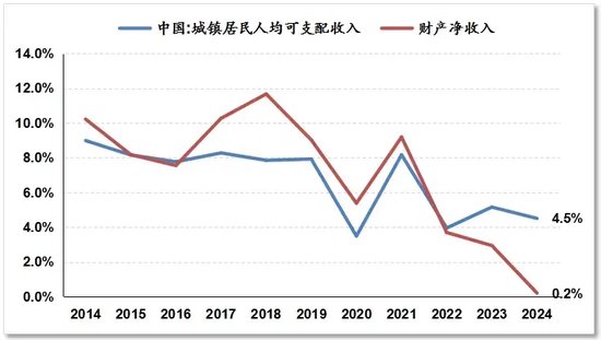 图表5中国城镇居民可支配收入和财产净收入增速