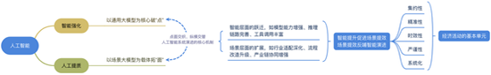 人工提质:以场景大模型为载体拓“面”。“面”即是人工智能与实体经济融合的广度与深度,正成为AI推动经济增长的主战场,而场景大模型的兴起正是“面”的拓宽的集中体现。“人工提质”强调以场景大模型为载体,结合行业数据与任务流程,将AI能力深度嵌入具体应用中,在实体经济层面实现融合扩展。