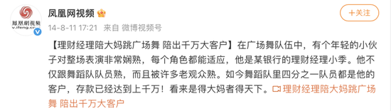 其实,银行员工能歌善舞也不是什么新鲜事了。早在十年前,就有银行组织员工下班后学习广场舞,以便打入大爷大妈‘内部’拉存款、卖理财,广场舞跳得好,千万存款不是梦。