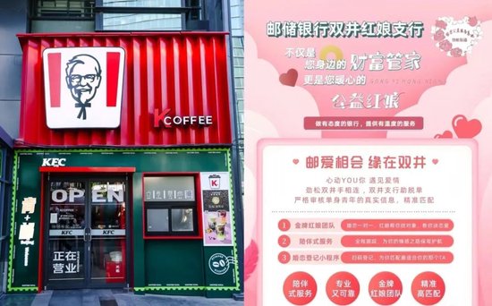 比如,业内赫赫有名的‘跨界’大户邮储银行,去年就凭借银行里卖炸鸡的‘肯德基支行’吸引了一波流量。