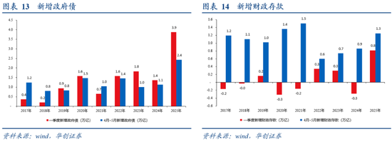 1、2025年4月~5月,政府净支出规模(新增负债-新增存款)约为1.1万亿,2017年~2024年,这一净支出规模均值0.1万亿,最高0.85万亿(2022年)。