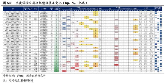 结合估值、抗跌表现来看,可关注招商局仁和人寿1-3Y。对于负债端较稳定的机构,以配置思路来看,可关注较优质主体永续债,如中邮人寿、交银人寿、工银安盛人寿,截至2025/6/10,3-5Y永续债余额平均估值普遍在2.2%左右。