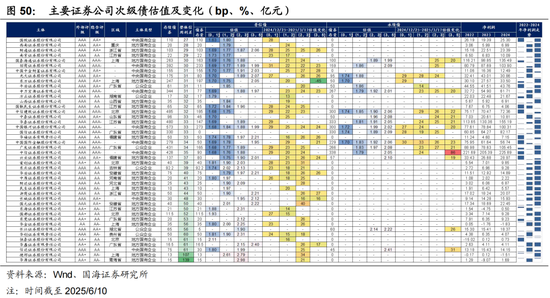 结合估值、抗跌表现来看,建议可关注估值相对较高且有一定期限利差的主体,如华安证券、华福证券、首创证券,截至2025/6/10,2-3Y次级债的估值多在2%左右,且有一定期限利差补偿,但整体来看性价比有限。