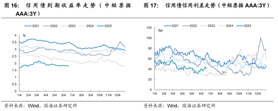 关注货币、财政政策的不确定性。关注下半年两个节点会议,一是7月政治局会议,关注会议政策定调及未来政策出台预期,以及政策预期导致的投资机构主动避险卖债行为。回顾近三年债市,每年8月债市都有所调整;二是12月的中央经济工作会议,但政策预期相对较弱,一般对债市扰动有限。